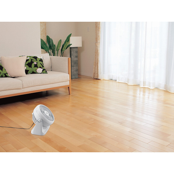 お部屋の温度ムラを少なくして冷暖房の効率をアップ。特殊グリルが作る直進性のある風で部屋の空気を強制循環します。3段階(強・中・弱)風量切替スイッチ付で、水平から真上まで5段階角度調節。よどんだ空気を換気するのにも便利です。